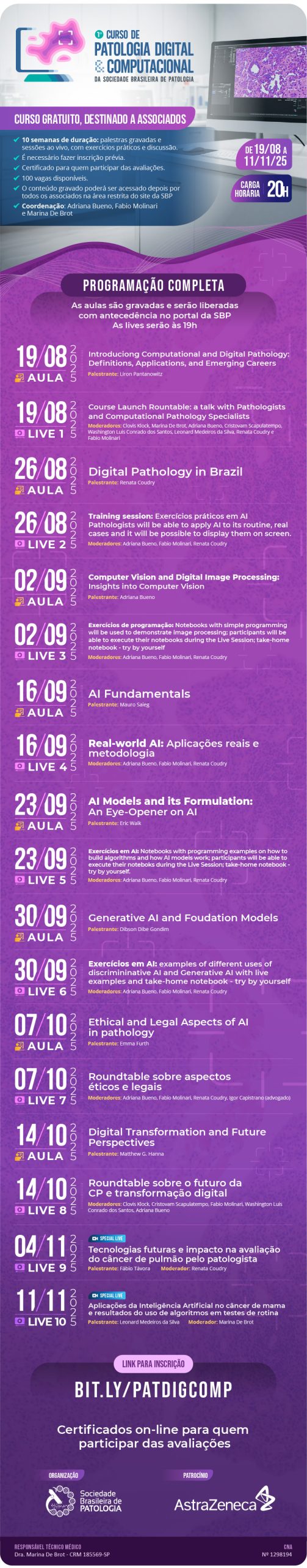 Para os não inscritos, o conteúdo poderá ser acessado na Área Restrita do Associado do site da SBP após a edição (tanto as lives como as aulas gravadas).