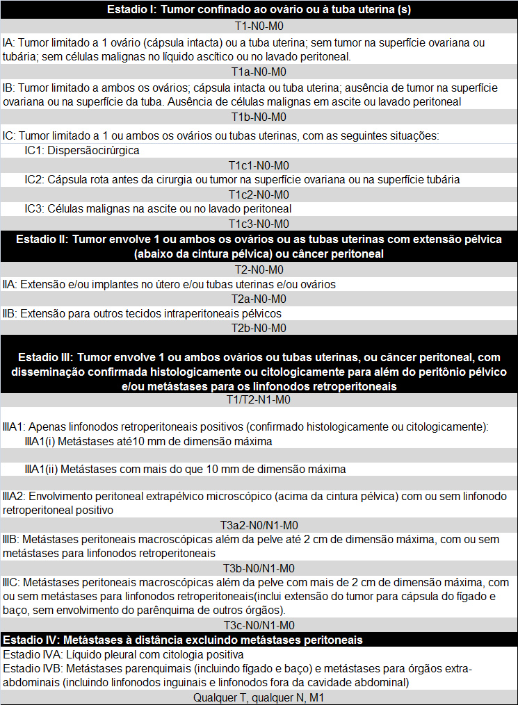 College of American Pathologists (CAP). Protocol for the examination of specimens from patients with carcinoma of the ovary. 2012. Disponível em: https://www.cap.org/apps/docs/committees/cancer/cancer_protocols/2012/Ovary_12protocol.pdf; acessado em: 19 de setembro de 2013.